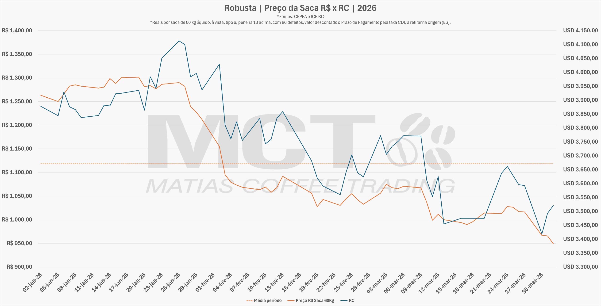 Ainda de lado, o Arábica continua dentro do range 277-300 c/lb, com alguns deslocamentos para cima sem força para subir […]